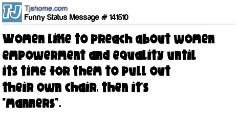 X says Women like to preach about women empowerment and equality until its time for them to pull out their own chair, then it's "manners".