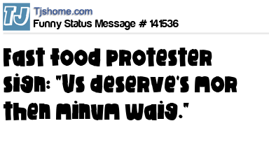 X  Fast food protester sign: "Us deserve's mor then minum waig."