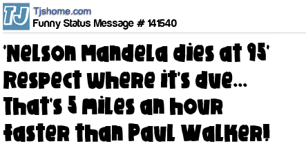 X says 'Nelson Mandela dies at 95' Respect where it's due... That's 5 miles an hour faster than Paul Walker!