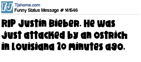 X says RIP Justin Bieber. He was just attacked by an ostrich in Louisiana 20 minutes ago.