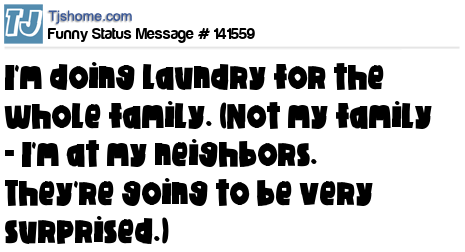 X says I'm doing laundry for the whole family. (Not my family - I'm at my neighbors. They're going to be very surprised.)