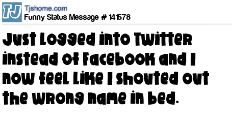 X says Just logged into Twitter instead of Facebook and I now feel like I shouted out the wrong name in bed.