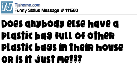 - # 136306 Does anyone else have a plastic bag full of plastic bags in their house, or is it just me?
