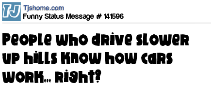 - # 208102 What I've learned from many years of driving: People who drive faster than me are obnoxious and people who drive slower than me are stupid.