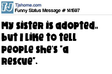 X My sister is adopted,, but I like to tell people she's "a rescue".