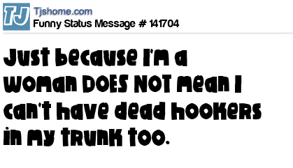 X says Just because I'm a woman DOES NOT mean I can't have dead hookers in my trunk too.