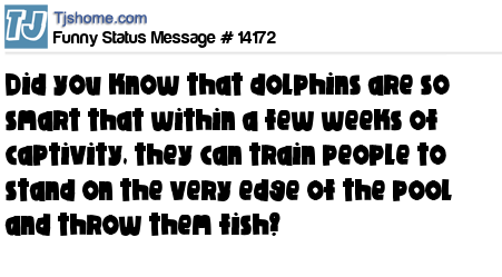 - # 45770 Did you know that dolphins are so smart that within a few weeks of captivity, they can train people to stand on the very edge of the pool and throw them fish?