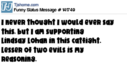 X says I never thought I would ever say this, but I am supporting Lindsay Lohan in this catfight. Lesser of two evils is my reasoning.