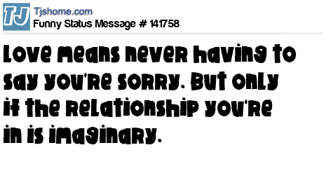 X says Love means never having to say you're sorry. But only if the relationship you're in is imaginary.