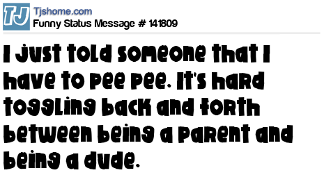 X says I just told someone that I have to pee pee. It's hard toggling back and forth between being a parent and being a dude.