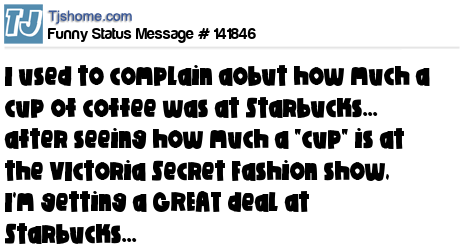 X says I used to complain aobut how much a cup of coffee was at Starbucks... after seeing how much a "cup" is at the VIctoria Secret Fashion show, I'm getting a GREAT deal at Starbucks...