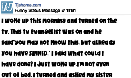 X is I woke up this morning and turned on the tv. This tv evangelist was on and he said"you may not know this, but already you have SINNED." I said what could I have done? I just woke up.I'm not even out of bed. I turned and asked my sister and she didn't know