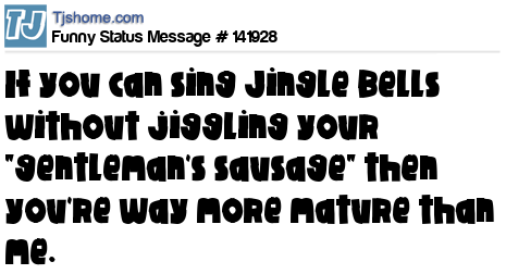 X says If you can sing Jingle Bells without jiggling your "gentleman's sausage" then you're way more mature than me.