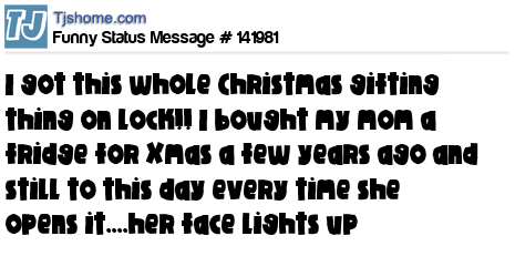 X says I got this whole Christmas gifting thing on lock!! I bought my mom a fridge for Xmas a few years ago and still to this day every time she opens it....her face lights up