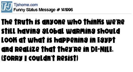 X The truth is anyone who thinks we're still having global warming should look at what is happening in Egypt and realize that they're in DE-NILE. (Sorry I couldn't resist)