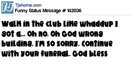 X says Walk in the club like whaddup I got a... Oh no, Oh God wrong building. I'm so sorry. Continue with your funeral. God bless