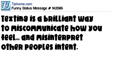 - # 150653 Texting is a great way to miscommunicate how you feel, and misinterpret what other people mean
