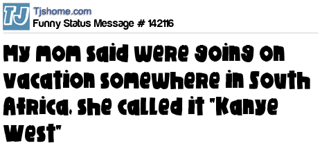 X says My mom said were going on vacation somewhere in South Africa, she called it "Kanye West"