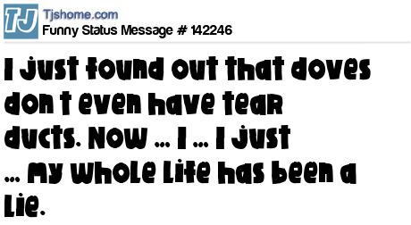 X says I just found out that doves don’t even have tear ducts. Now … I … I just … my whole life has been a lie.