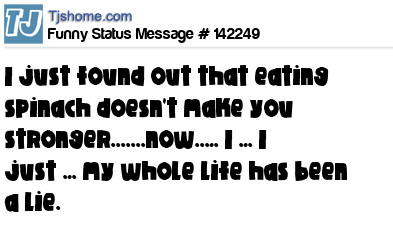X says I just found out that eating spinach doesn't make you stronger.......now..… I … I just … my whole life has been a lie.