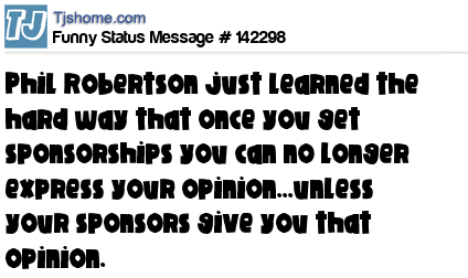 X says Phil Robertson just learned the hard way that once you get sponsorships you can no longer express your opinion...unless your sponsors give you that opinion.