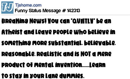 X Breaking News! You can "QUIETLY" be an Atheist and leave people who believe in something more substantial, believable, reasonable, realistic and is NOT a mere product of mental invention......Learn to stay in your lane dummies.