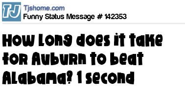 X says How long does it take for Auburn to beat Alabama? 1 second