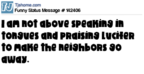 X says I am not above speaking in tongues and praising Lucifer to make the neighbors go away.