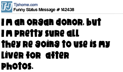 - # 80652 I'm an organ donor, but I'm pretty sure all they're going to use is my liver for *after* photos.