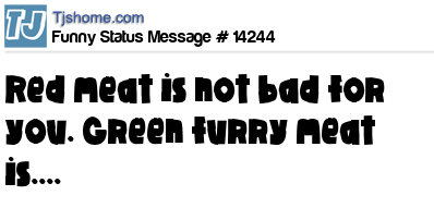- # 163269 Red meat is not bad for you. Fuzzy green meat...now THAT'S bad for you.