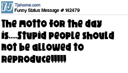 X says The motto for the day is....Stupid people should not be allowed to reproduce!!!!!