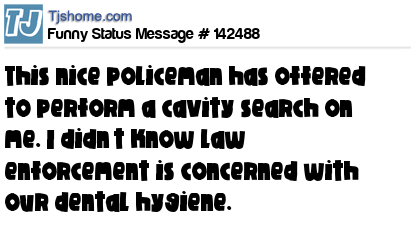 X says This nice policeman has offered to perform a cavity search on me. I didn’t know law enforcement is concerned with our dental hygiene.