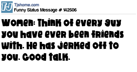 X says Women: Think of every guy you have ever been friends with. He has jerked off to you. Good talk.