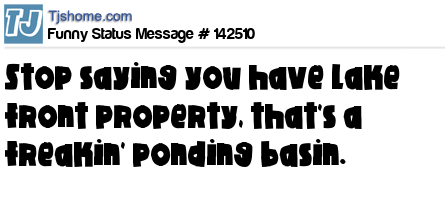 X  Stop saying you have lake front property, that's a freakin' ponding basin.