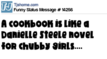 X says a cookbook is like a Danielle Steele novel for chubby girls....