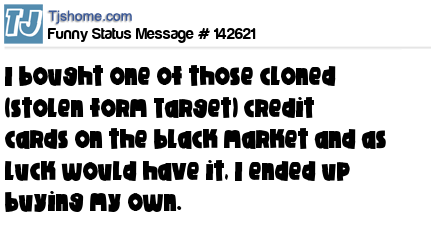 X I bought one of those cloned (stolen form Target) credit cards on the black market and as luck would have it, I ended up buying my own.