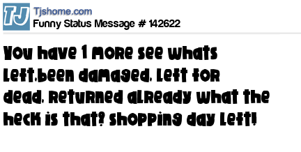 X says you have 1 more see whats left,been damaged, left for dead, returned already what the heck is that? shopping day left!