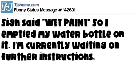 - # 151487 Sign said “WET PAINT” So I emptied my Dasani water bottle on it. I’m currently waiting on further instructions.