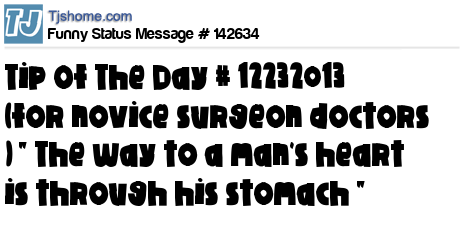 X says Tip Of The Day # 12232013 (for novice surgeon doctors ) " The way to a man's heart is through his stomach "