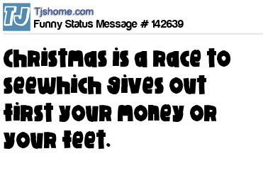 X says Christmas is a race to seewhich gives out first your money or your feet.
