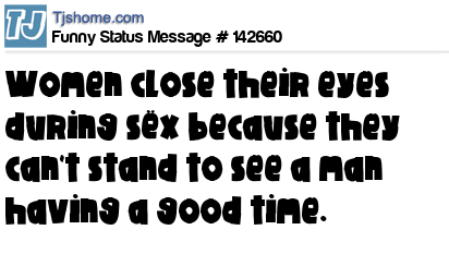 - # 39599 I now know why women close their eyes during sex. They cant stand to see a man enjoy himself.