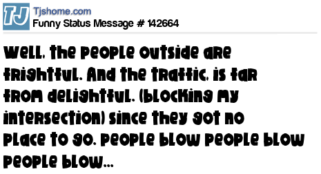 - # 204261 Well, the people outside are frightful. And the traffic, is far from delightful. (blocking the intersection) since they got no place to go. people blow people blow people blow...