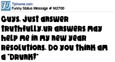 X says Guys, just answer truthfully.ur answers may help me in my new year resolutions. Do you think am a "Drunk?"