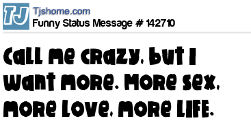 X says Call me crazy, but I want more. More sex, more love, more LIFE.