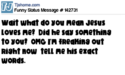 - # 143875 Wait what do you mean Jesus loves me? Did he say something to you? OMG I'm freaking out right now tell me his exact words.