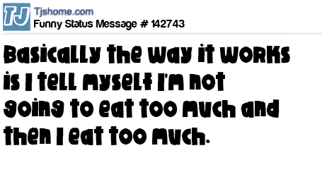 X says Basically the way it works is I tell myself I'm not going to eat too much and then I eat too much.