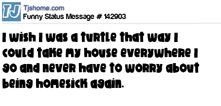 X says I wish I was a turtle that way I could take my house everywhere I go and never have to worry about being homesick again.