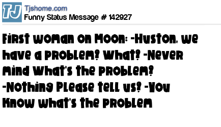 X says First woman on Moon: -Huston, we have a problem? What? -Never mind What's the problem? -Nothing Please tell us? -You know what's the problem