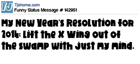 X says My New Year's Resolution for 2014: Lift the X Wing out of the swamp with just my mind.
