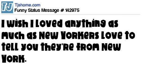 X says I wish I loved anything as much as New Yorkers love to tell you they're from New York.